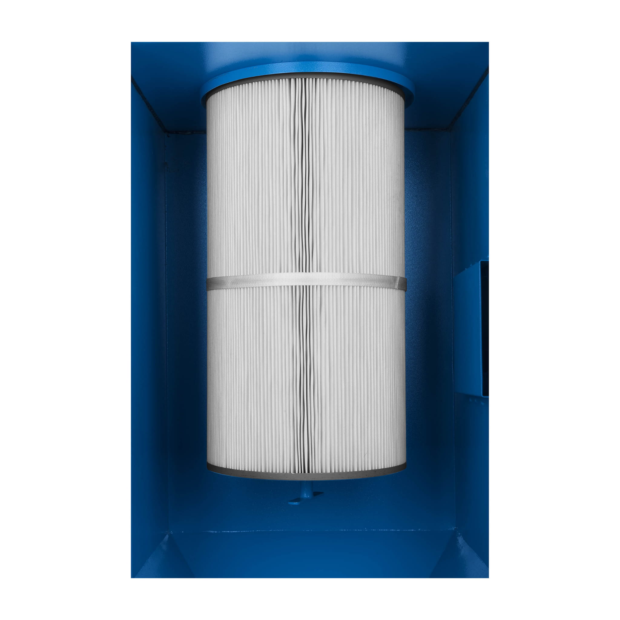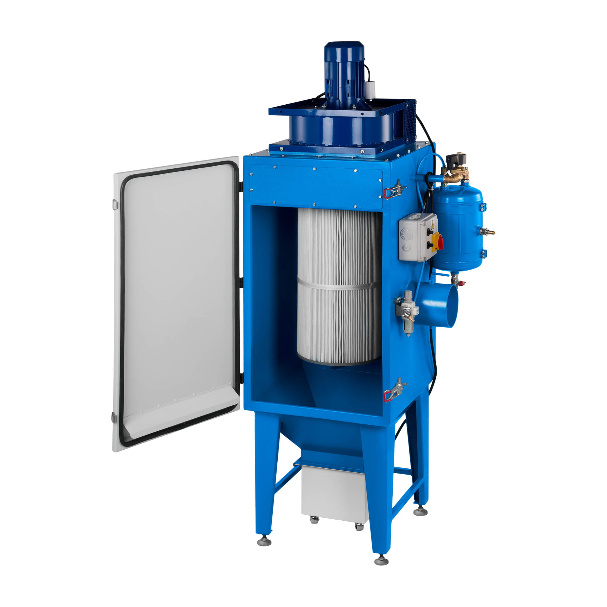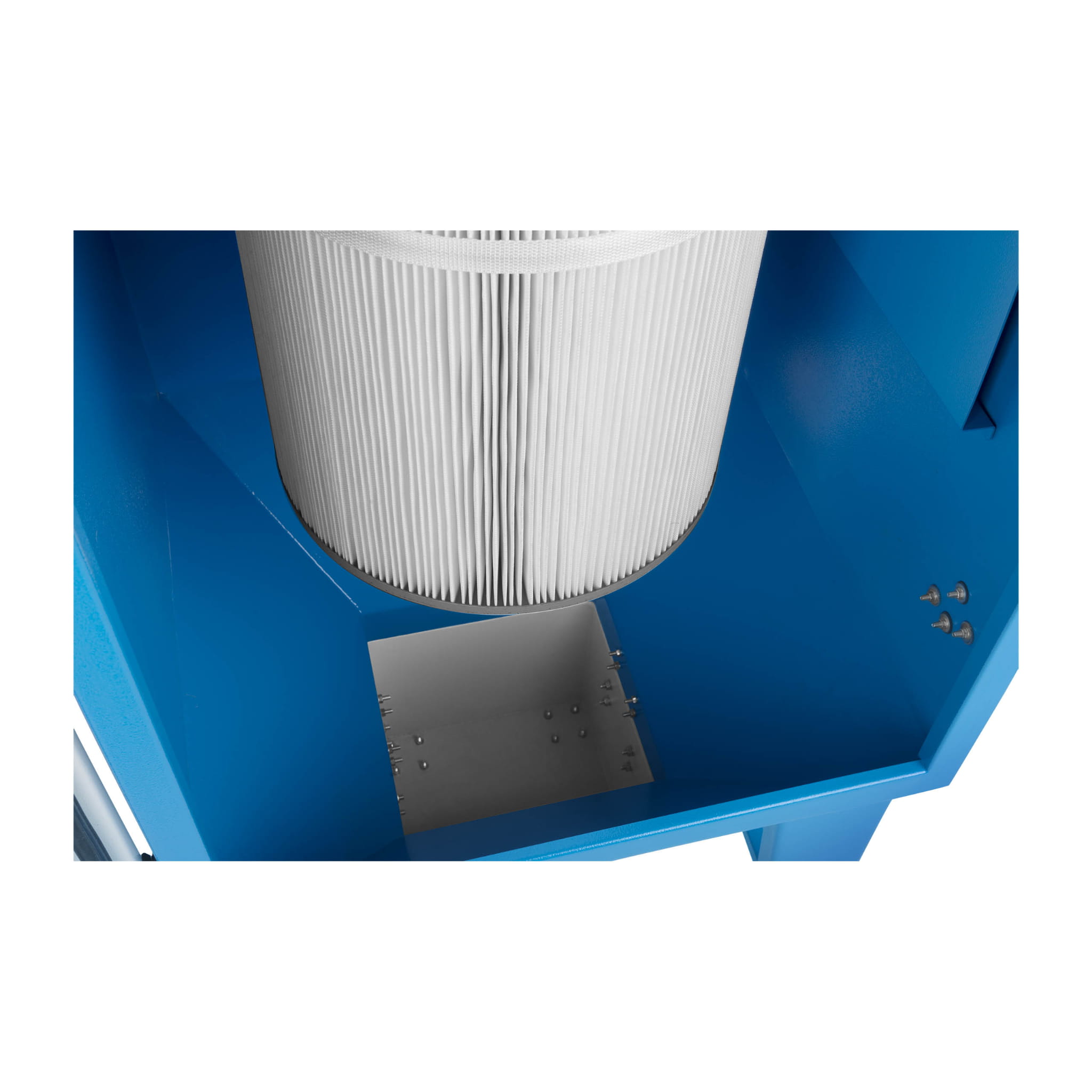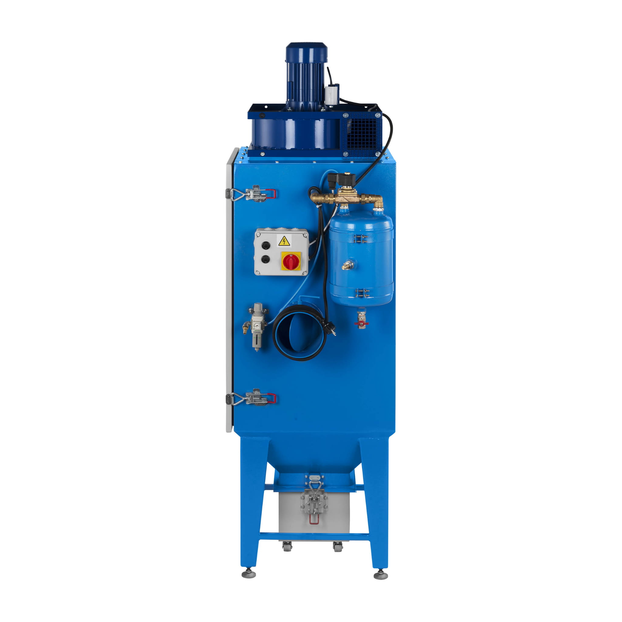 Filtrowentylator Clean Air przeznaczony do odciągania pyłów, cząstek stałych z maszyn do obróbki metalu, szkła i tworzyw sztucznych, a w szczególności urządzeń piaskujących Blast Jet. Podciśnieniowy zespół odpylający Clean Air przystosowany jest do pracy w systemie ciągłym. Wyciąg pozwala na większą widoczność podczas pracy oraz ogranicza wydobywanie się z kabiny niebezpiecznego dla zdrowia pyłu. Podłączenie bezpośrednio do piaskarki.